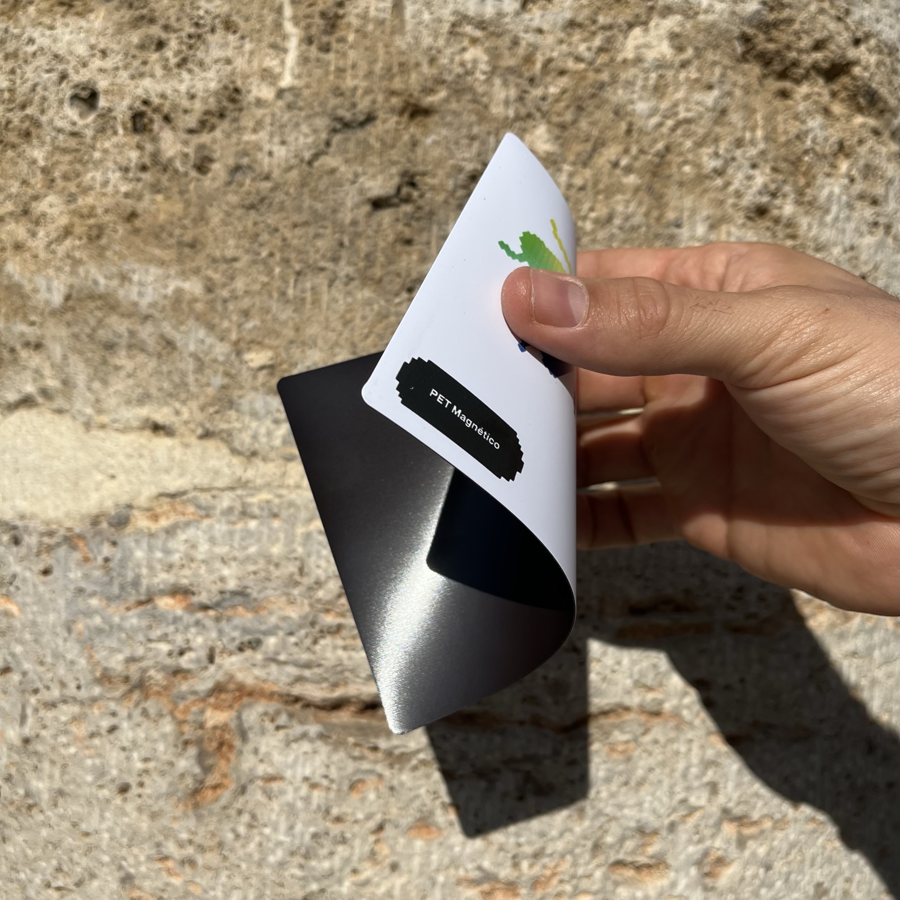 Un material compuesto por un soporte flexible con una superficie de poliéster blanco mate y una trasera magnética para aplicar sobre superficies metálicas. Tiene una muy fácil instalación, manipulado y corte, buena resistencia a la humedad, no deja residuos y tiene una largavidaútil.