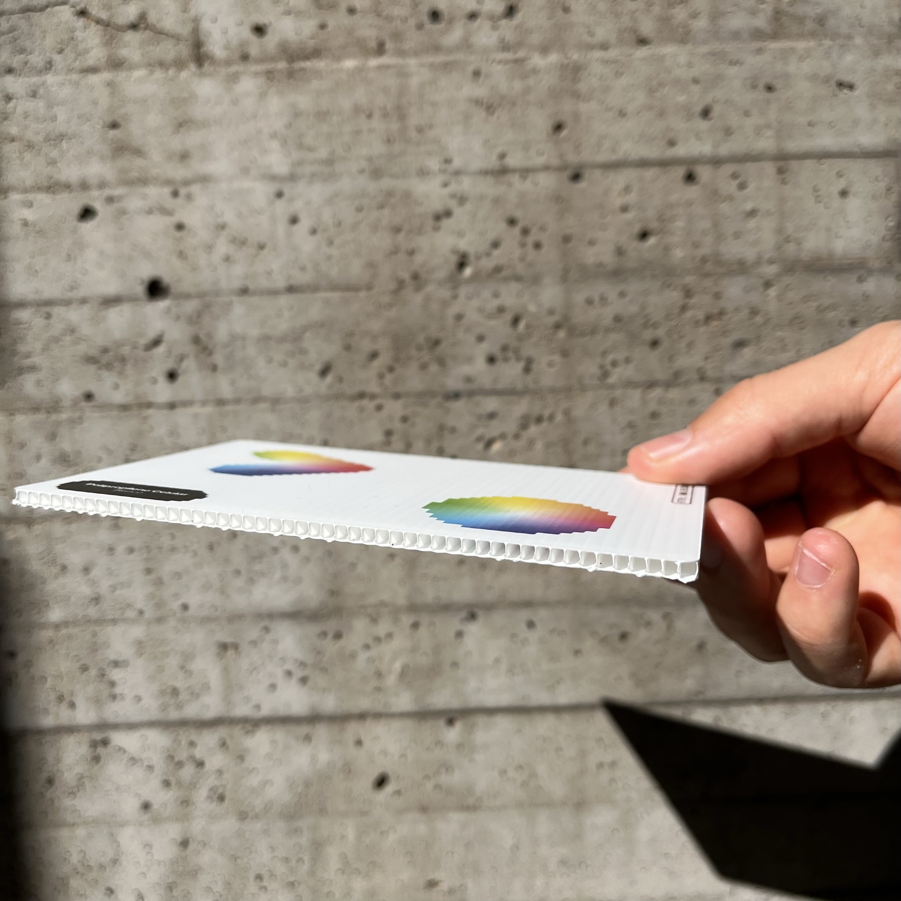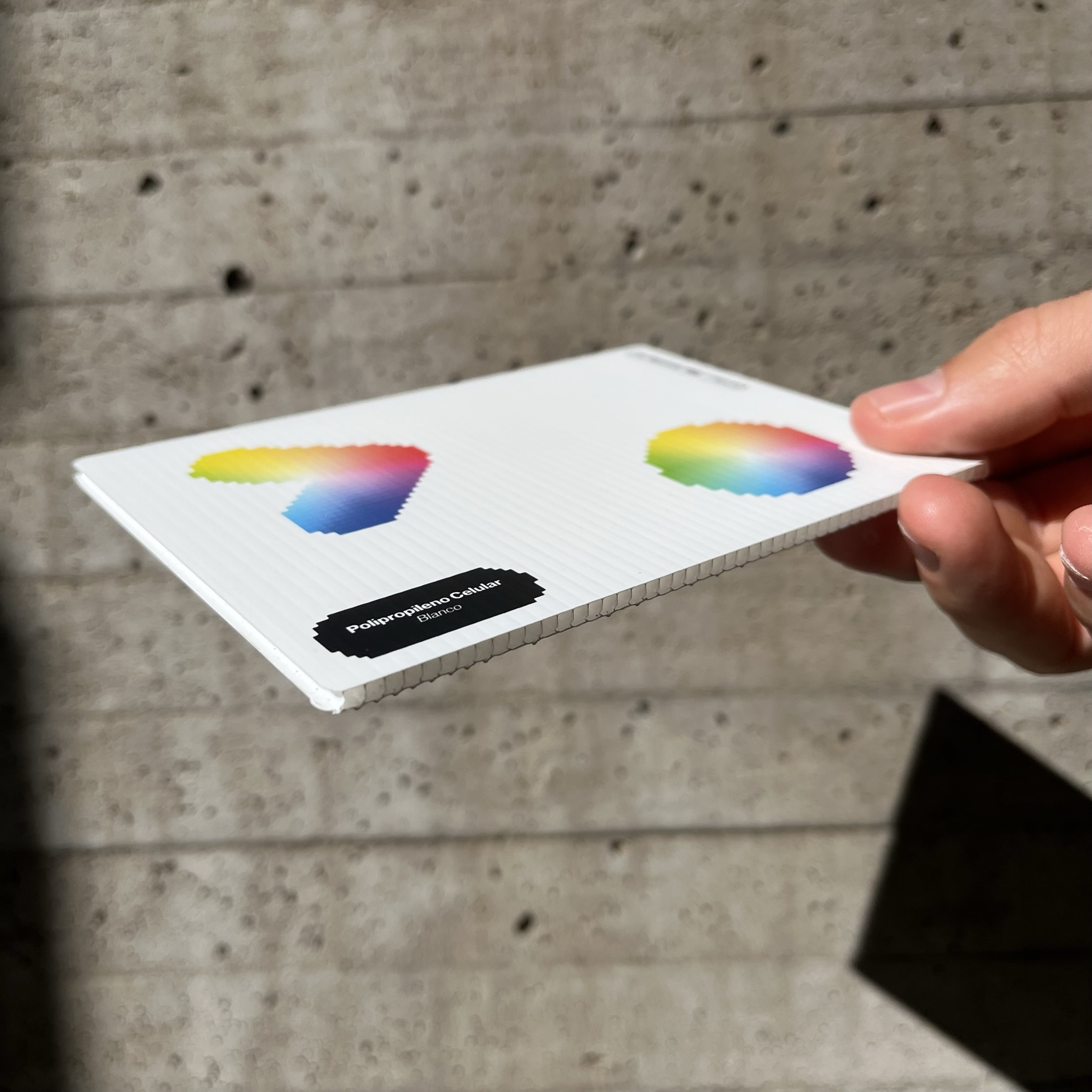 Un plástico estándar de uso universal con propiedades muy equilibradas, reciclado en parte y reciclable en su totalidad, con una excelente resistencia química, gran pureza, baja absorción de agua y buenas propiedades de aislamiento eléctrico. Es además muy ligero y se puede soldar. Presenta una estructura de canales internos muy similar a la del cartón ondulado. Su versión blanca además es traslúcida, lo que permite interesantes juegos a nivel de diseño.